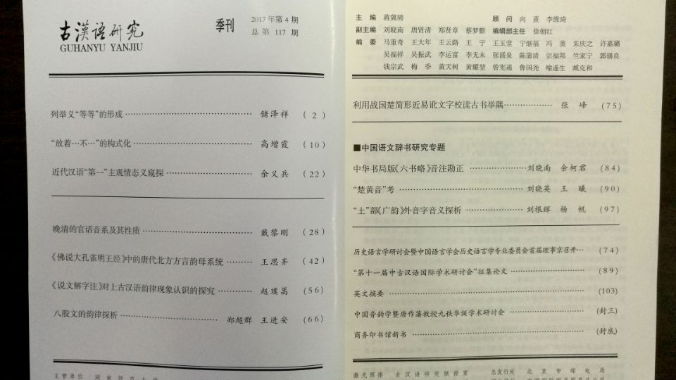 《古汉语研究》2017年第4期(总第117期)