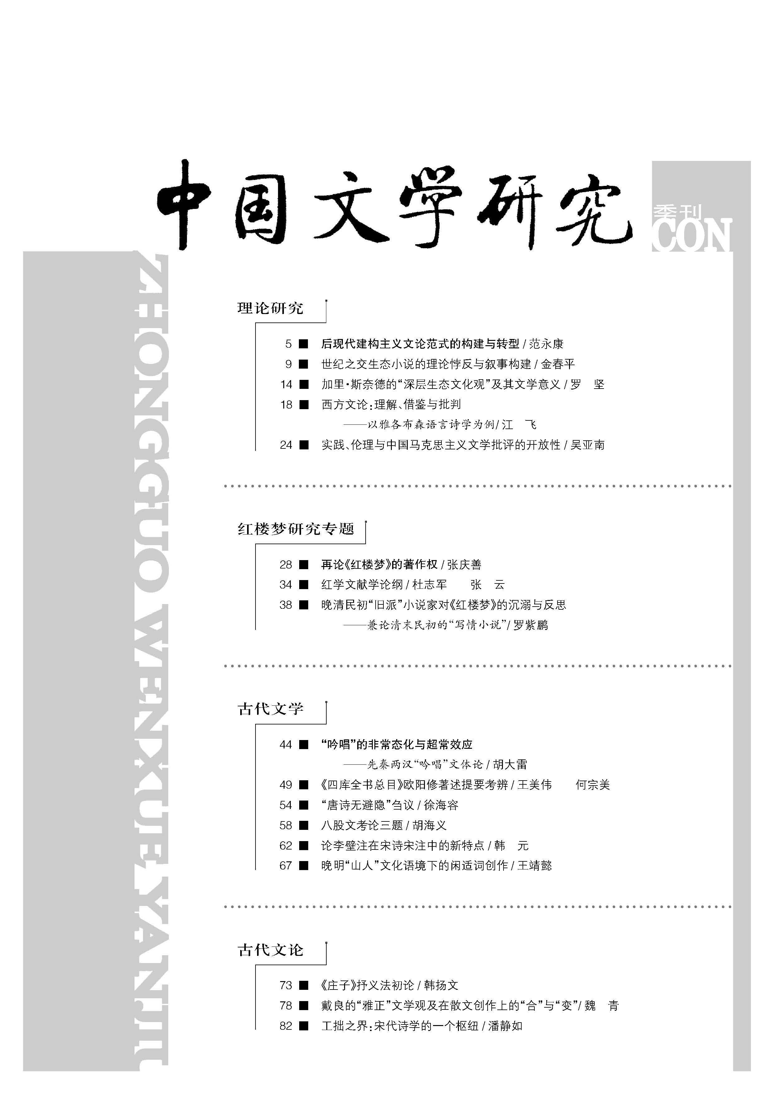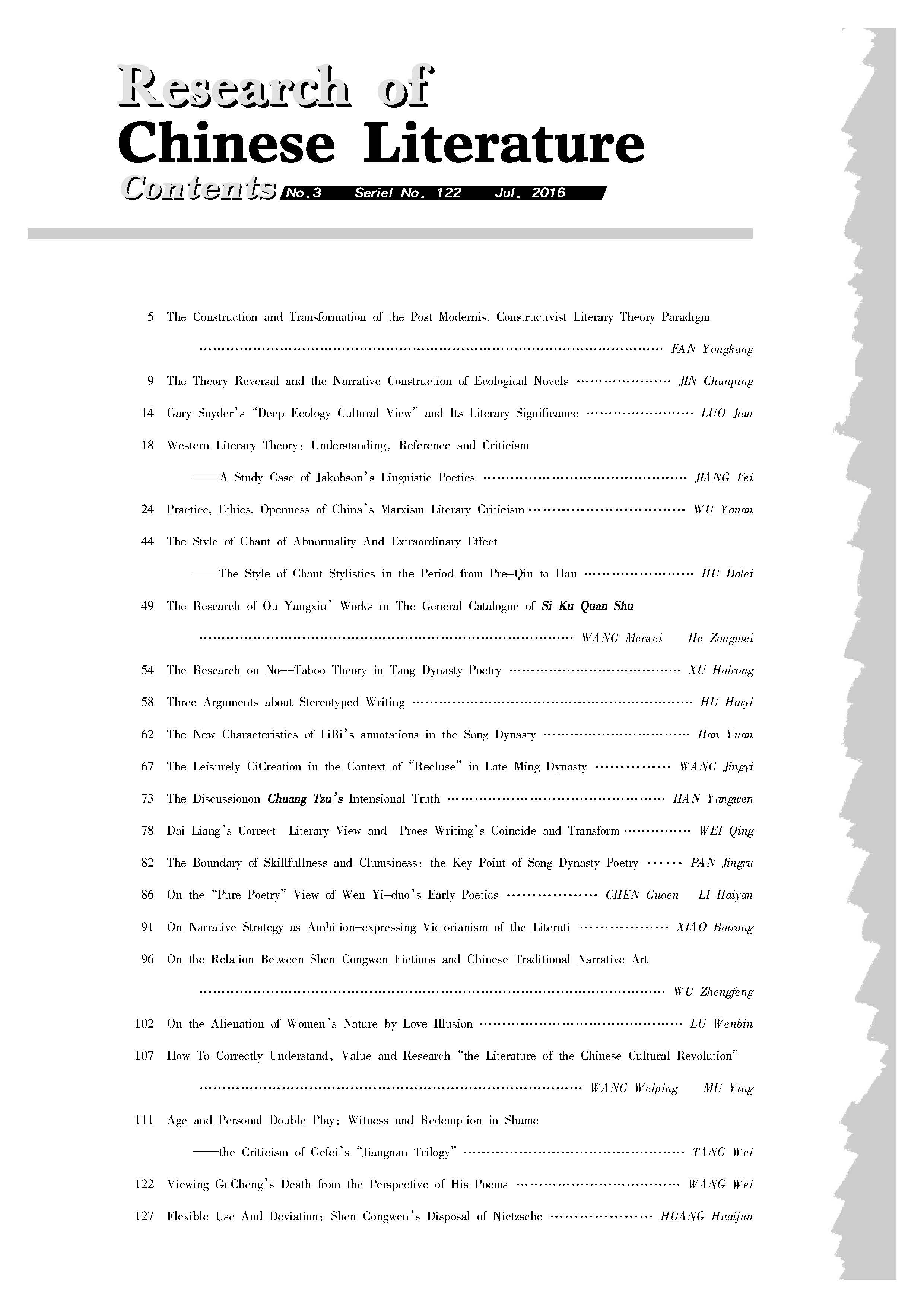 《中国文学研究》2016第三期(总122期)