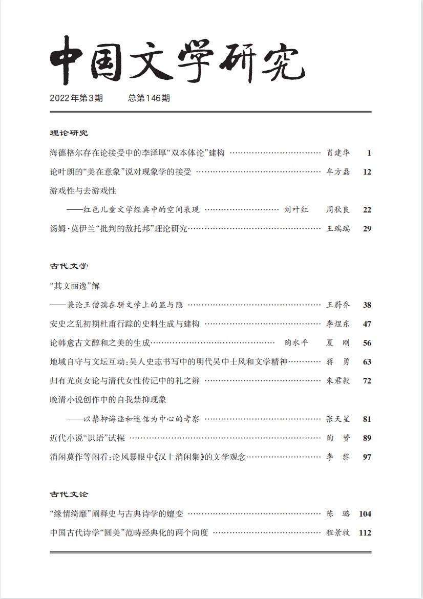 《中国文学研究》2022年第3期总第146期