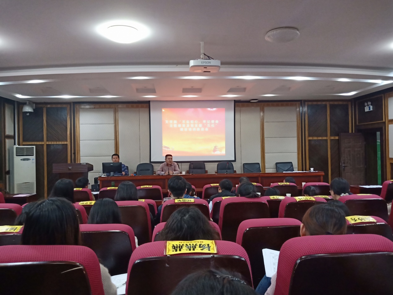 2019年11月5日晚7点,学院在216报告厅召开“不忘初心、牢记使命”主题教育和党支部“五化”建设工作培训推进会。院党委书记李伶俐、院党委委员肖百容、院党委办主任夏云飞、各支部书记、委员全部参加了会议,会议由院党委副书记熊剑峰主持。