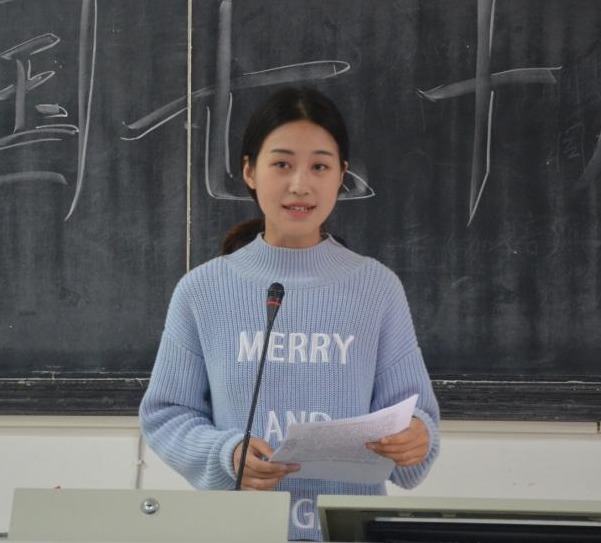 “壮丽七十载,奋进新时代。”宣讲伊始,高子妍以自身汉语国际教育专业的特点说起,为同学们讲述了一位外国留学生的故事,以外国友人对中华传统文化的向往激发同学们的文化自信与爱国情怀。她说:“越来越多的国家开始拥抱、喜爱和学习中国文化。这是值得我们每个中国人骄傲的事情。”
