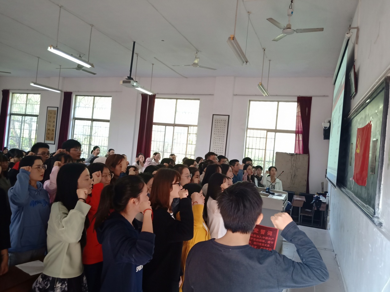 2019年11月3日中午,文学院在416教室举行庄严而隆重的预备党员入党宣誓仪式,文学院新发展预备党员及学院第67期全体入党积极分子参加。宣誓仪式由文学院党委办主任夏云飞主持。