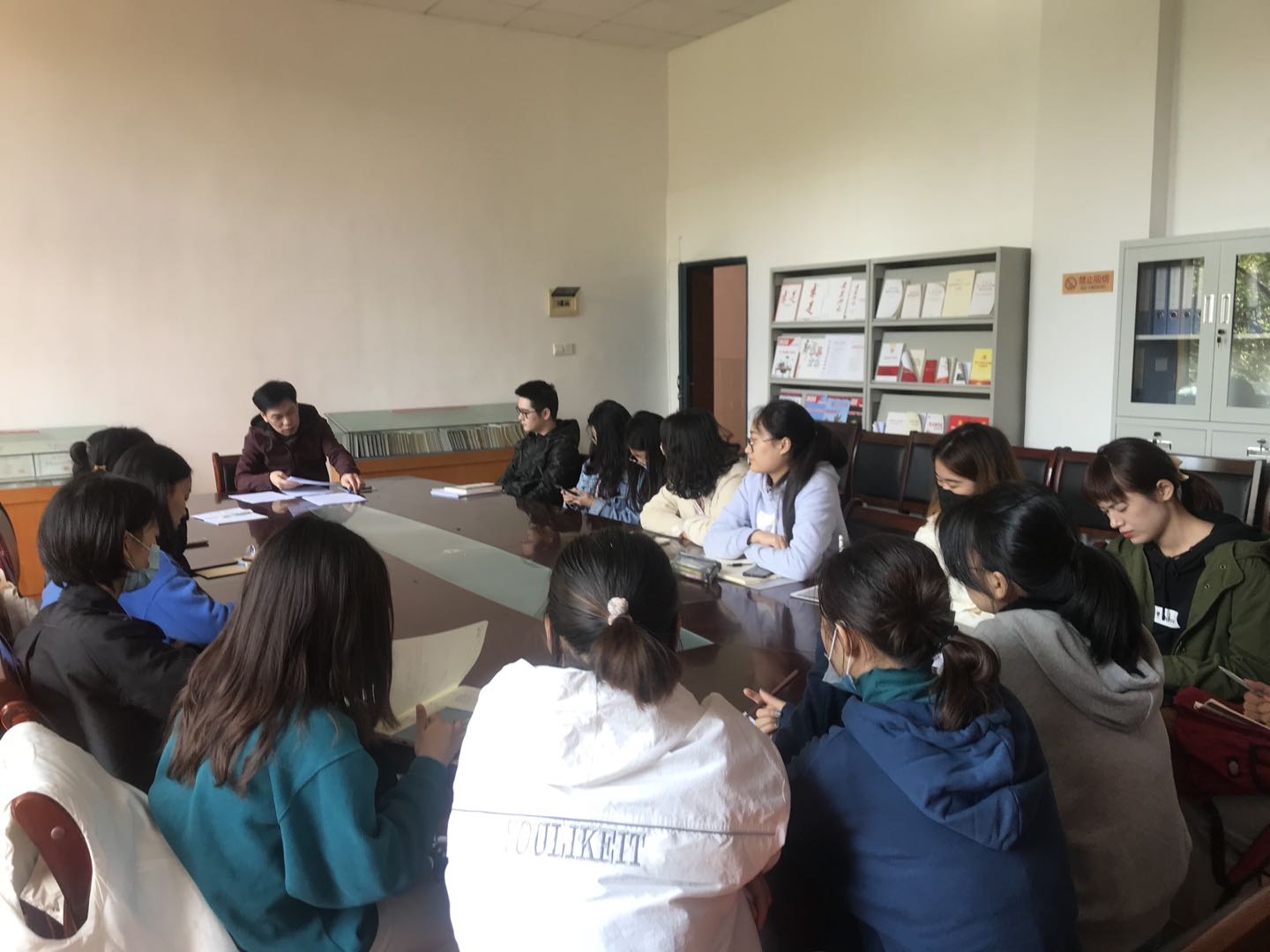 2020年10月21日中午,学院党委在314“党员之家”组织召开各学生支部委员培训会,全体学生支部副书记及组织委员参加,文学院党委办主任夏云飞老师主讲,学工办辅导员王倩老师参加了此次培训会。