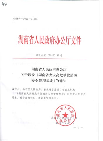 《湖南省火灾高危单位消防安全管理规定》
