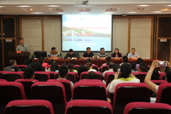 (通讯员:栗焓)5月15日上午,广东省惠州市初中语文骨干教师培训班在湖南师范大学文学院216教室举行开班典礼。我校文学院党委书记李伶俐,副院长彭万福,继续教育学院副院长吴跃飞,培训科科长张雪梅,惠州市教育局教师继续教育科项目负责人杨振武等出席开班典礼。典礼由培训班班主任廖加丰主持。