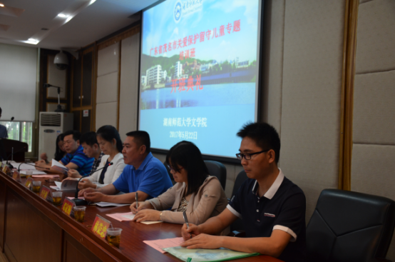 (通讯员:粟一烜)5月22日上午,广东省茂名市关爱保护留守儿童专题培训班在文学院216教室开班。茂名市教育局机关党委副书记林桂梅,茂名市教育局基础教育科副科长邓家梅,湖南师范大学继续教育学院马卫平院长,文学院党委书记李伶利,文学院副院长彭万福,继续教育学院培训科科长张雪梅,文学院成教办主任张德强出席典礼,本次典礼由培训班班主任陈胜冲主持。