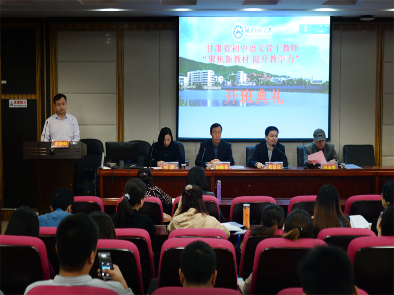 (通讯员 包佳文)10月30日上午,甘肃省初中语文骨干教师“聚焦新教材、提升教学力”培训班在文学院216报告厅举行开班典礼。甘肃省人民政府督学姬维多、甘肃教育培训中心项目管理员冯永波、文学院院长郑贤章出席开班典礼,典礼由文学院成教办主任张德强主持。