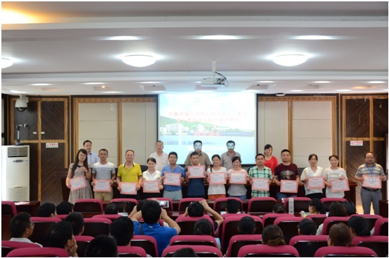 2016年8月3日上午,来自安徽省宣城市宣州区各中学的88名语文、数学骨干老师,完成培训任务在文学院216学术报告厅举行结业典礼。宣州区教体局党委副书记陈信君,湖南师范大学文学院党委书记李伶俐等出席结业典礼。典礼由文学院成教办主任张德强主持。