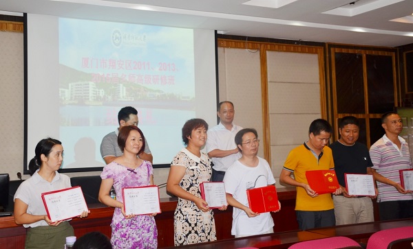 2015年8月11日,厦门市翔安区2011、2013、2015届名师高级研修班结业典礼在文学院216报告厅举行,厦门市翔安区教师进修学校师训处主任王玉龙、湖南师范大学文学院副院长彭万福和研修班全体学员参加了结业典礼。典礼由湖南师范大学文学院成教办主任张德强主持。