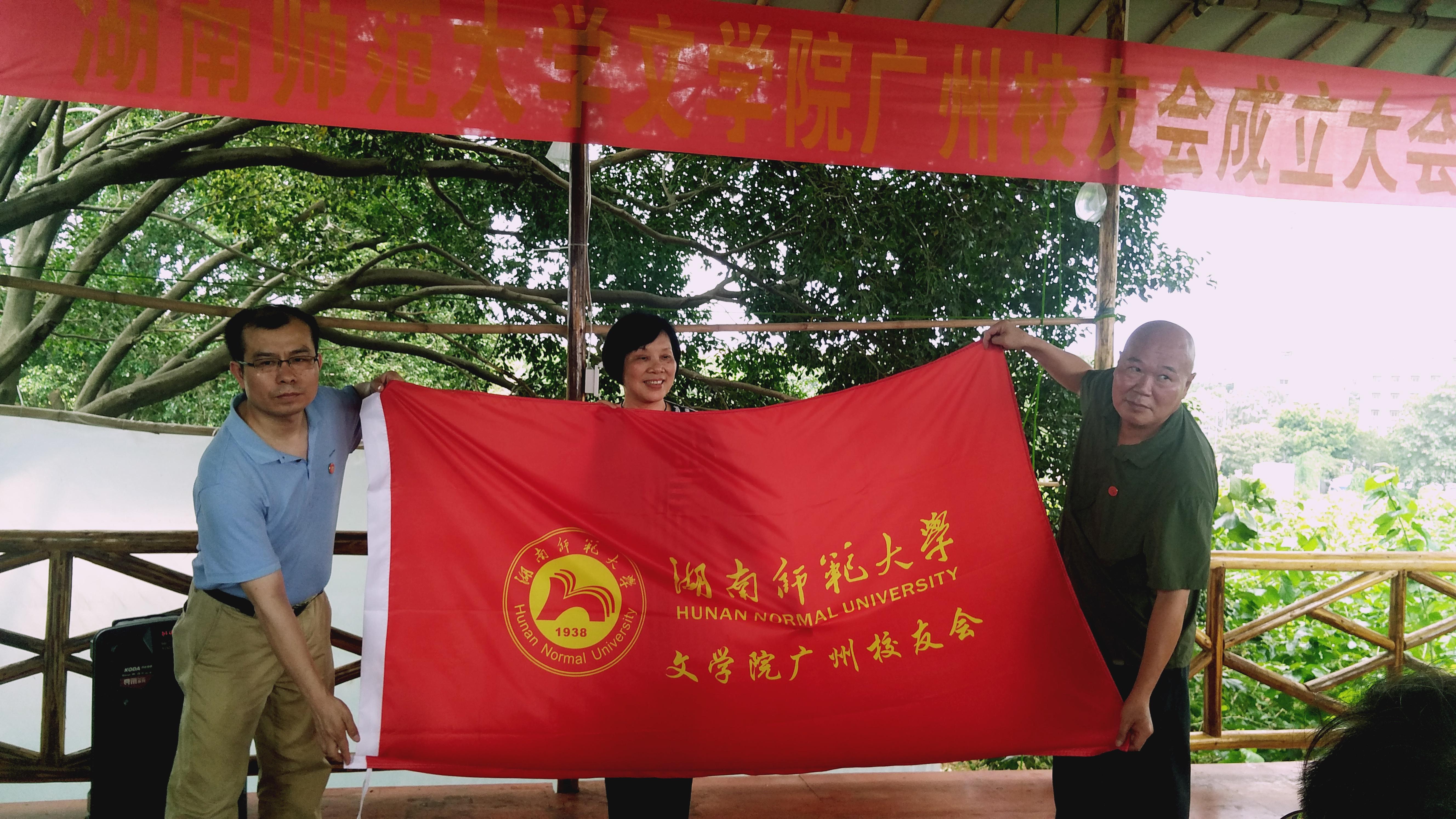 会上,湖南师范大学校友总会杨玲秘书长宣读校友分会成立学校批复。全体到会校友审议通过了湖南师大文学院广州校友会章程和理事会成员名单。湖南师范大学原副校级督导徐书华同志代表母校向文学院广州校友会授会旗。新任会长、78级校友程祥煌发表了热情洋溢的就职感言。78级政治系校友、广州政协副秘书长范松青先生,78级文学院校友、湖南省人民政府驻广州办事处副主任邹传庆先生,82教育系校友、广州华美实验学校校长、现任学校广州校友会长陈峰先生等领导嘉宾相继上台发表贺词,提出发展建议。国家级人才、文学院院长、博士生导师郑贤章教授、原副校级督导徐书华同志分别代表母院、母校表示祝贺,希望校友们广泛交流,沟通情谊,深入合作,共同建设好广州校友分会。