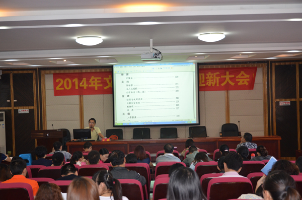 (通讯员王乐管接东)9月21日中午,文学院副教授、中国古代文学教研室主任、硕士生导师王建在文学院216学术报告厅为“国培计划(2014)”——重庆市义务教育学科教学能力培训班全体学员讲授了中国古诗鉴赏方法。