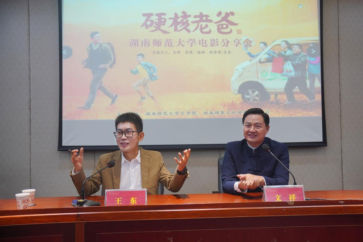 (通讯员刘库)11月10日下午,由湖南师范大学文学院、湖南砚泉文化传媒有限公司主办的电影《硬核老爸》观影分享会暨文祥“电影追梦人”主题演讲在文学院216教室开展。湖南砚泉文化传媒有限公司董事长文祥,湖南省电影评论协会秘书长王东,湖南师范大学文学院党委副书记刘宓蜜,湖南师范大学文学院戏剧影视文学系专任教师刘库,湖南师范大学文学院本科生与研究生等参加活动。活动由省广播电视台导演、省电影评论协会秘书长王东主持。