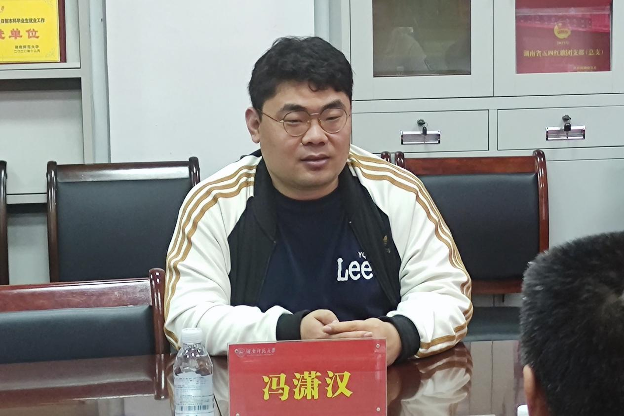 (通讯员张尧钰王辰瑶)4月16日下午,我院2014级戏剧影视文学专业优秀校友冯潇汉回访母校。党委书记李伶俐、院长肖百容、副院长岳凯华、副院长周凯兴、副处专职组织员夏云飞、戏剧影视文学系系主任胡海义、学工办主任周灿,专业教师高欢欢、吕不出席座谈会。