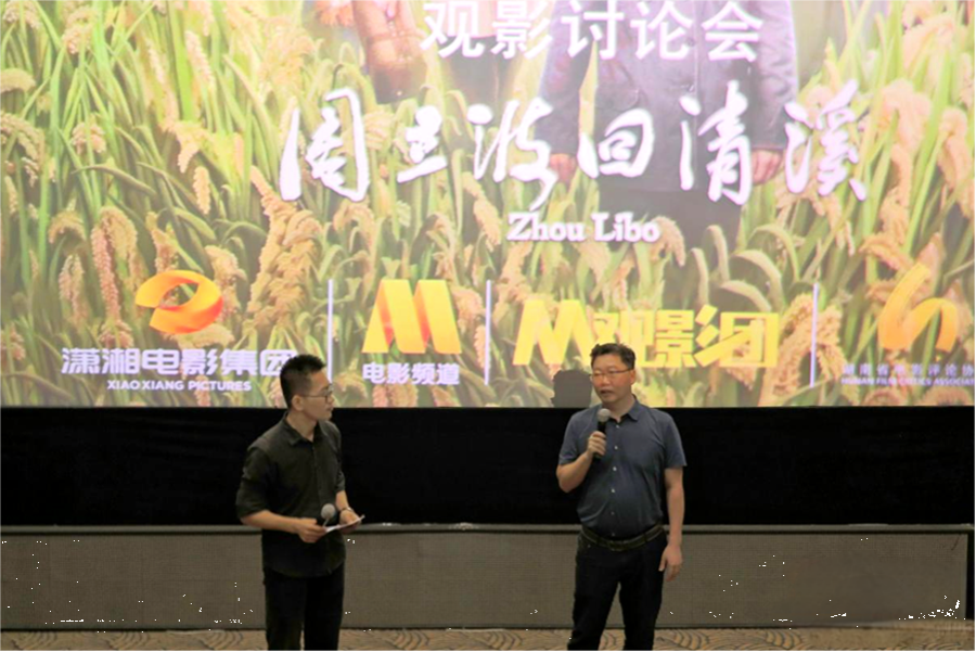 5月17日下午,湖南省电影评论协会联合潇湘电影集团、湖南潇影第二影业、电影频道M观影团、湖南师范大学文学院在长沙潇湘国际影城天马店举行电影《周立波回清溪》观影讨论会。省电影评论协会副主席刘开云、岳凯华,秘书长王东,文学院戏剧影视文学系专业老师高欢欢,文学院戏剧影视文学系本科生与研究生等影评人出席活动,活动特别邀请了该片的编剧、导演赵楠,制片人彭隽、张翔到现场和大家分享幕后故事,共同探讨主旋律传记电影对现代农村的创造性表达和时代性书写。