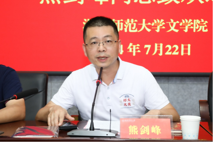 仪式在庄严的中华人民共和国国歌中开幕。熊剑峰书记代表学院致欢迎辞。他介绍了湖南师范大学和文学院的历史底蕴和发展现状,寄语全体学员在培训期间应加强交流、互学互鉴,勤于思考、联系实际,确保学有所获、学以致用。
