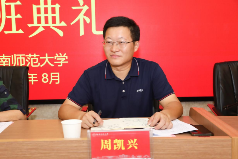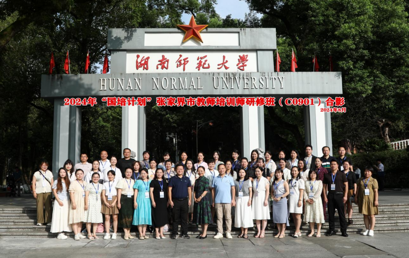 8月19日上午,2024年“国培计划”张家界市教师培训师研修班在文渊楼203报告厅举行开班仪式。湖南师范大学文学院副院长周凯兴、文学院副教授周敏、张家界市师资培训中心主任佘红英、张家界市国培市级管理员刘双全以及44名学员参加开班仪式。