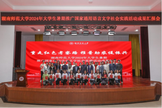 (通讯员周瑞芝金凤萍郭泫妤范文宣)10月24日下午,湖南师范大学2024年大学生暑期推广国家通用语言文字社会实践活动成果汇报会在国际学术报告厅举行。来自各院系的8支优秀“推普助农”团队进行了现场答辩汇报。其中“推普润乡”、“焕新乡村画卷”、“乡遇新田”三支实践团获得汇报一等奖。
