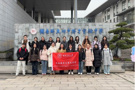 图为文学院2022级赴湖南师范大学附属黄埔实验学校实习队正式进校
