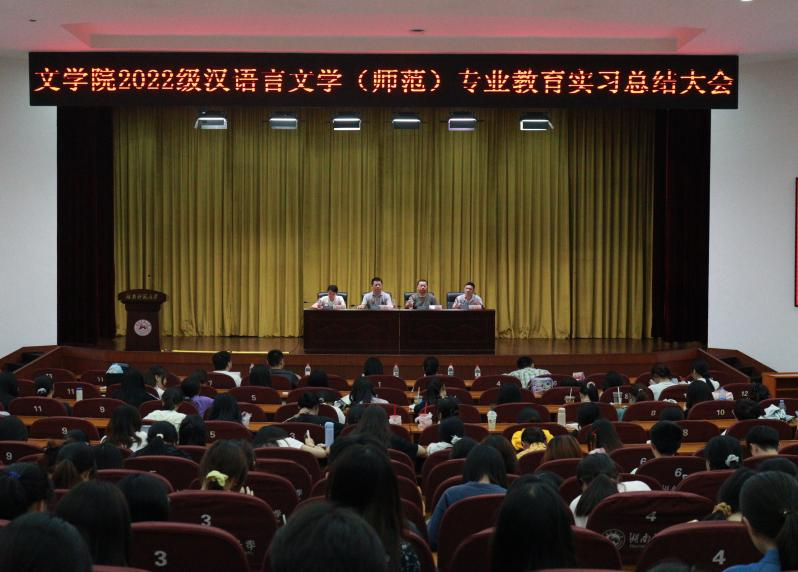 (通讯员 黄迎迎 陈晓岚 赵晨彤)5月30日下午,文学院2022级汉语言文学(师范)专业于湖南师范大学国际学术报告厅召开教育实习总结大会,我院党委书记熊剑峰、教学副院长岳凯华、党委副书记刘宓蜜、中文系副主任刘光成、实习指导老师代表以及全体实习生参加会议,会议由韩淇主持。