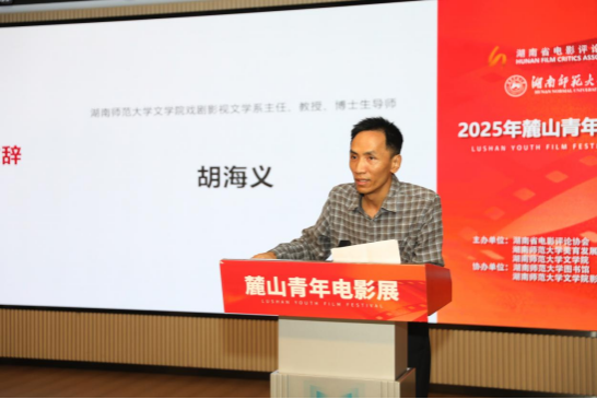 湖南师范大学文学院戏剧影视文学系主任胡海义教授在开幕式致辞中介绍到湖南师范大学戏剧影视文学专业的发展历史可追溯至1938年,历经多年发展已形成本科、硕士、博士的完整培养体系,2022年专业获评国家级一流本科专业,专业注重理论与实践相结合,借影展平台展示学生作品以促进人才成长,期待未来涌现更多优秀作品并提升学科影响力。