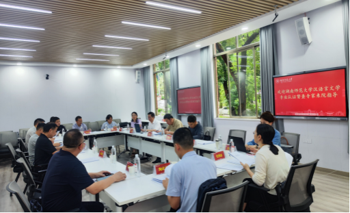(通讯员于子焓)6月23日下午,湖南师范大学评建办副主任袁俏率学校师范认证专家团莅临我院进行汉语言文学(师范)专业三级认证专项督查。专业团成员包括湖南师范大学原副校长黎大志教授、地理科学学院原副院长谭长银教授、外国语学院陈敏哲教授。文学院副院长岳凯华、副书记刘宓蜜、中文系主任曾绍皇、副主任刘光成、教务办秘书李青及特色案例撰稿人、中文系各教研室主任参加会议。会议由袁俏主持。