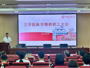 (通讯员王颖)8月31日下午,文学院在216报告厅召开新学期教职工大会,全院教职工参加,会议由党委书记熊剑峰主持。