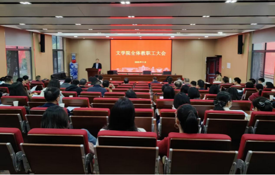 (通讯员陈雅琪)11月6日下午,文学院在216报告厅召开全体教职工大会暨师德师风警示教育会,全体教职工参会,会议由学院党委书记熊剑峰主持。
