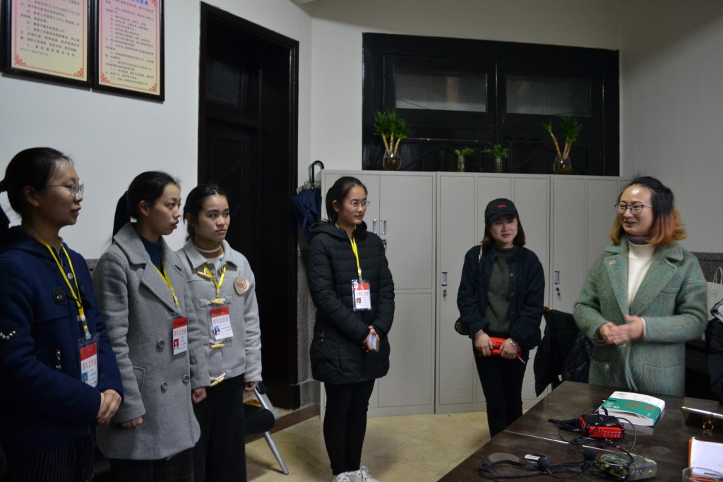 第一轮讲解,志愿者们姿势仪态落落大方,普通话标准,吐字清楚。但因为第一次上岗第一位志愿者稍显紧张,偶有忘词现象。第二位则更加自信,将烈士生平英勇事迹娓娓道来,吸引了一批游客。一轮讲解完毕后,志愿者们回到办公室,负责人提出先让大家自评。来自文学院16级的包金东反思自己“声音不大,吸引不了游客,接下来要更加自信”。自评完毕后负责人一一点评,她指出“大家普遍的问题就是说话声音没有起伏,听起来像是在背书,而且缺少与游客的互动”,说完之后便给大家做了示范。