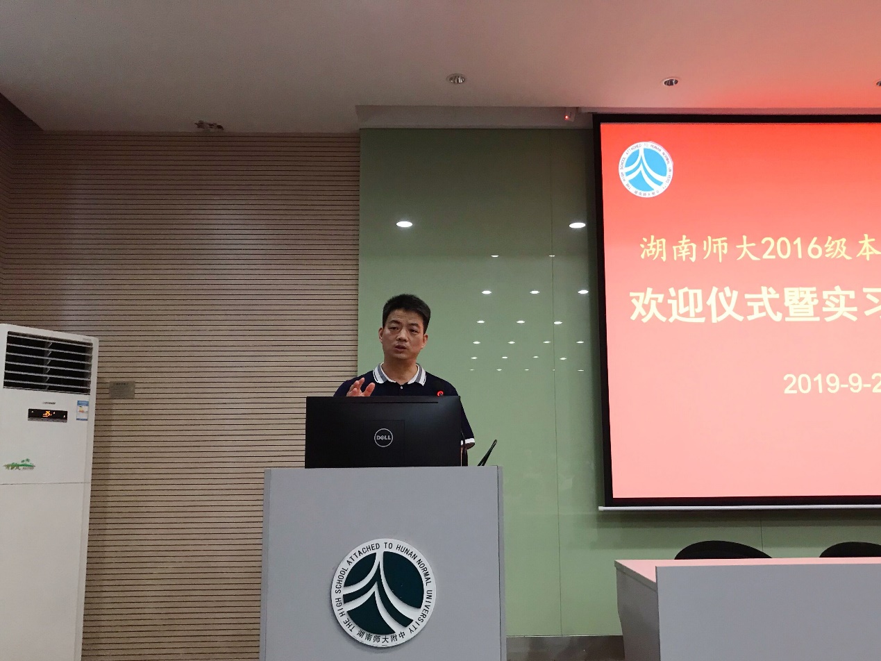 (通讯员 朱旺波 赵美杨)9月25日下午,湖南师范大学文学院赴湖南师大附中实习队在湖南师大附中图书馆报告厅参加实习欢迎仪式暨实习工作动员会。此次会议由湖南师大附中课程与教学处副主任王朝霞主持,湖南师大教师教育学院副院长邓宏霞、湖南师大附中教育教学副校长苏建祥、课程与教学处主任黄宇鸿、德育与学生发展处副主任袁建光、高一年级组长李海汾、高一语文备课组长李小军、湖南师大文学院赴师大附中实习队指导老师文浩出席,参与此次会议的还有来自其他院校的128位实习生。