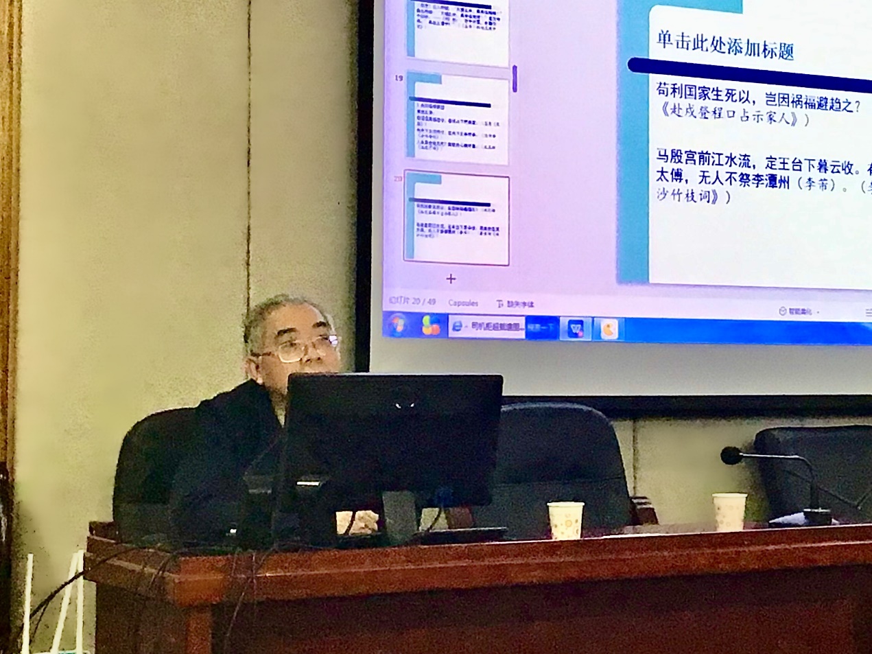 (通讯员 陈静)12月4日下午,岳麓书社总编审、国家出版基金评委、湖南省新闻出版局图书审读专家马美著莅临我校,在文学院216教室开展了题为“今天我们怎样学国学——谈谈国学和国学教育”的主题讲座。讲座由湖南师范大学文学院蒋振华教授主持,文学院教师、研究生和本科生代表参加讲座。