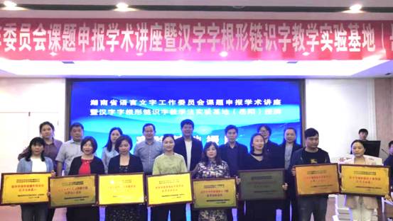 (通讯员:熊茁 单宇微)2021年5月21日下午,湖南省辞类汉字字根排检输入研究中心主办的“湖南省语言文字工作委员会课题申报学术讲座暨汉字字根形链识字教学实验基地授牌仪式”在岳阳市岳阳楼小学成功举行。我校文学院语言学教授彭泽润、兼职教授罗健以及硕士研究生佘欣慰出席并且做主题演讲。