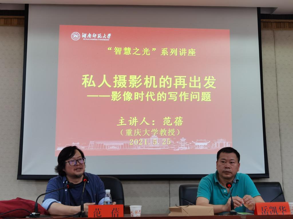 (通讯员 牛哲妮)5月25日下午3:00,重庆大学教授,硕士生导师范蓓在文学院216开展“智慧之光”学术名师系列讲座,主题为“私人摄影机的再出发:影像时代的写作问题”,此次讲座由文学院副院长岳凯华教授主持以及做最后总结。