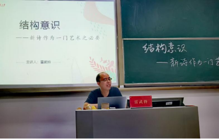 (通讯员梁淑怡)5月23日,诗人、译者、诗歌评论家,河北大学文学院雷武铃教授,应邀前来湖南师范大学文学院,展开题为“结构意识——新诗作为一门艺术之必要”的专题演讲。讲座由我院写作学学科负责人李作霖副教授主持,写作学和创意写作专业研究生、黑蚂蚁诗社社员等90多位诗歌爱好者聆听了讲座。