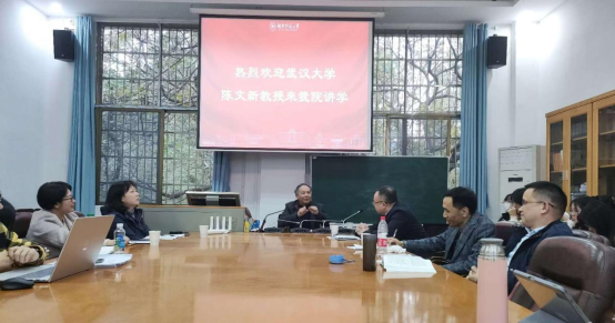(通讯员黄甜甜)2024年11月23日下午,武汉大学文学院教授、博士生导师、教育部“长江学者”特聘教授陈文新教授应邀至湖南师范大学文学院开展题为“明代诗坛的台阁、郎署、山林和市井”的学术讲座。本次讲座由古代文学学科带头人曾绍皇教授主持,文学院吕双伟、胡海义、吴晨骅、向双霞、李华等老师以及古代文学、古典文献学等专业的50余名硕博士生参加。