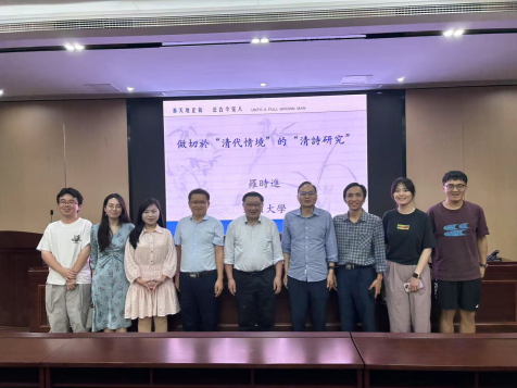 (通讯员罗磊)5月20日晚七点半,苏州大学文学院罗时进教授应邀在我院216会议室开展题为“做切于‘清代情境’的‘清诗研究’”的讲座。该讲座由颜建华教授主持,吕双伟教授、胡海义教授、向双霞、王珂等老师以及本院硕博研究生和广西师范大学本科研学团师生近100人参加。