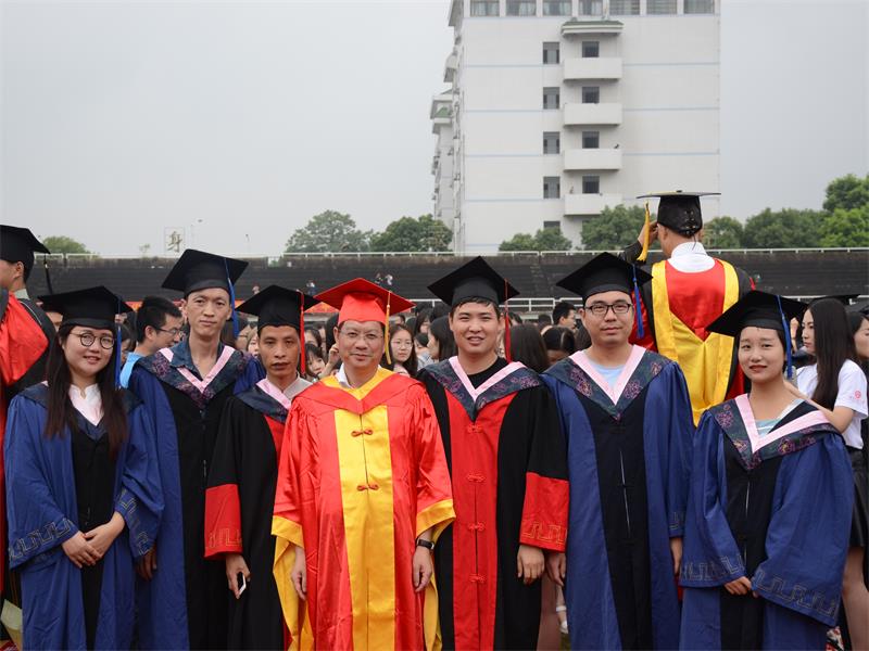 典礼后,我院教授唐贤清、彭泽润、赵炎秋为文学院全体毕业生颁发毕业证书、拨转流苏、授予学位,并合影留念。