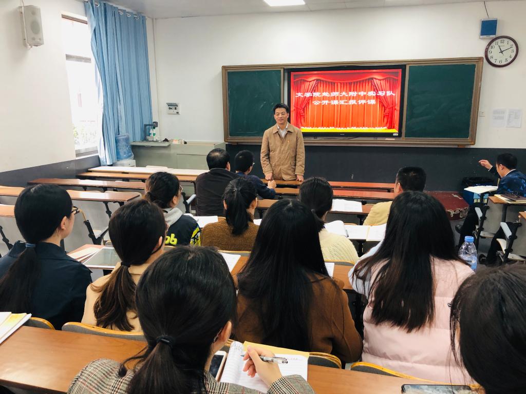 文学院党委书记李伶俐正在点评公开课并鼓励实习生