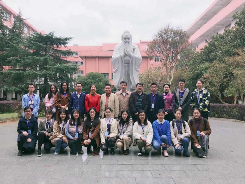 会后,与会人员在师大附中孔子像前合影留念。