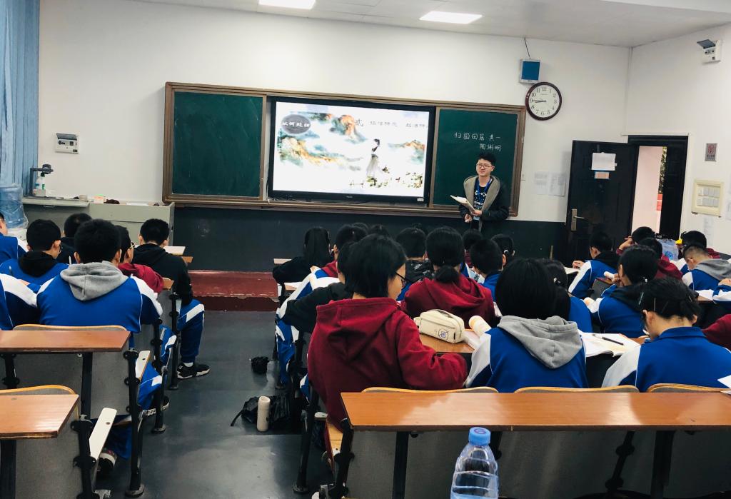 实习生朱旺波正在讲授《归园田居(其一)》