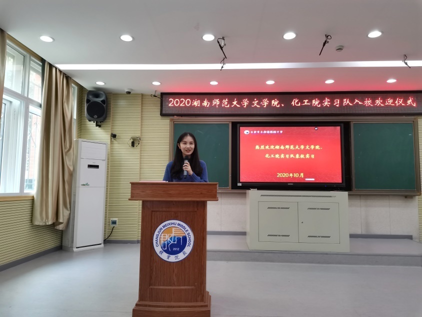 通讯员(熊颖军 罗雅静)10月12日上午,我院2017级实习队赴长郡梅溪湖中学参加入校欢迎仪式。欢迎仪式由长梅中学教务办蒋慧玲老师主持,长郡梅溪湖中学校长刘欣、教务处主任何永清、中学各学科老师代表、文学院实习队领队老师黄乐平、化工学院领队老师张超以及实习学生参加了此次欢迎仪式。