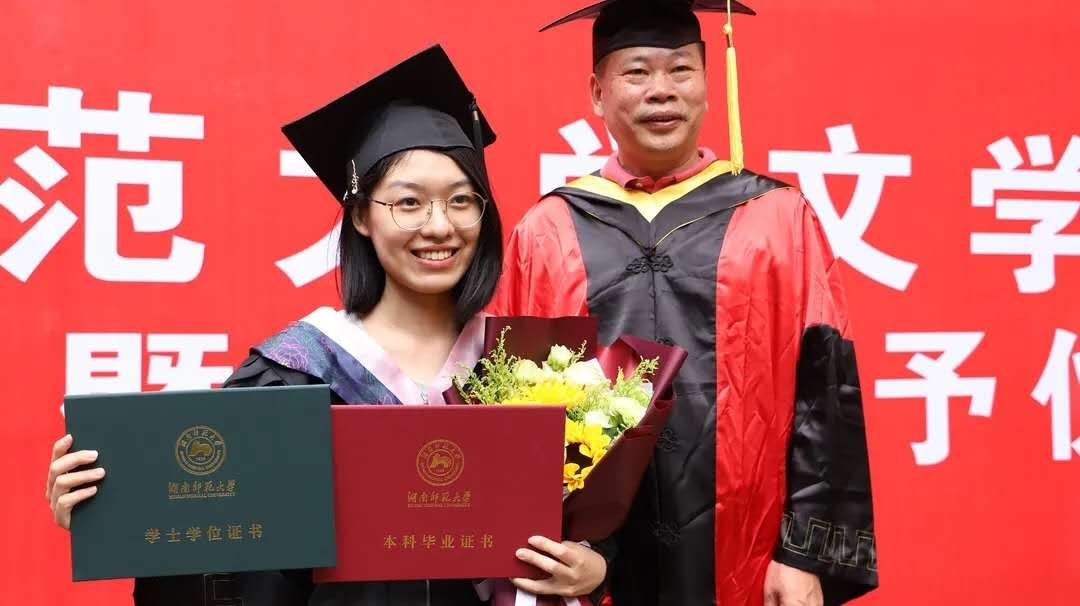 典礼尾声,郑贤章教授、肖百容教授、岳凯华教授、吕双伟教授、陈晖教授、胡海义教授为毕业生们颁发毕业证书、学位证书并正冠拨穗。毕业生们与各教师代表合影留念。